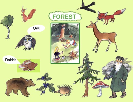 malé obrázky předmětů. Při kliku se předmět zvětší a zazní jeho pojmenování.